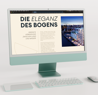 Exklusive Immobilien verlangen nach exklusiver Inszenierung und aufmerksamkeitsstarkes, elegantes Marketing. Für DC DEVELOPMENT entwickelten wir die internetgestützten Vertriebsmitel, das Design und die Namensgebung für diese Ausnahmeimmobilie direkt am Wasser. In Hamburg.